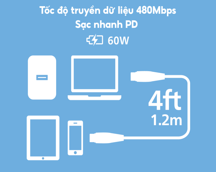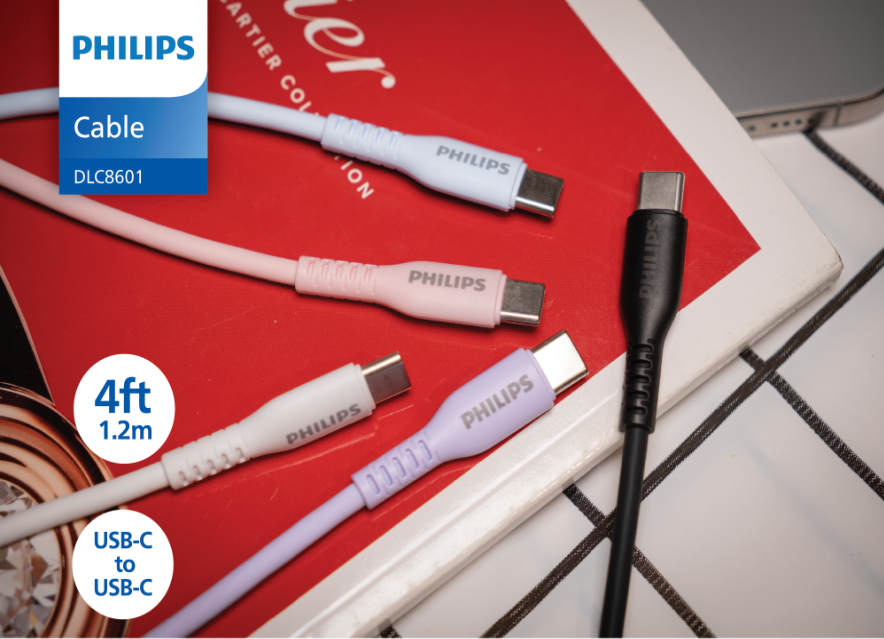Cáp sạc Philips Max 60W Type C to Type C | Dài 1.2M | Dây Silicone | Sạc và Truyền dữ liệu nhanh