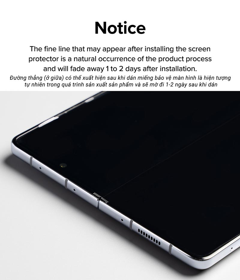 Đường thẳng (ở giữa màn hình) có thể sẽ xuất hiện sau khi dán là hiện tượng tự nhiên trong quá trình sản xuất sản phẩm và sẽ mờ đi 1-2 ngày sau khi dán.