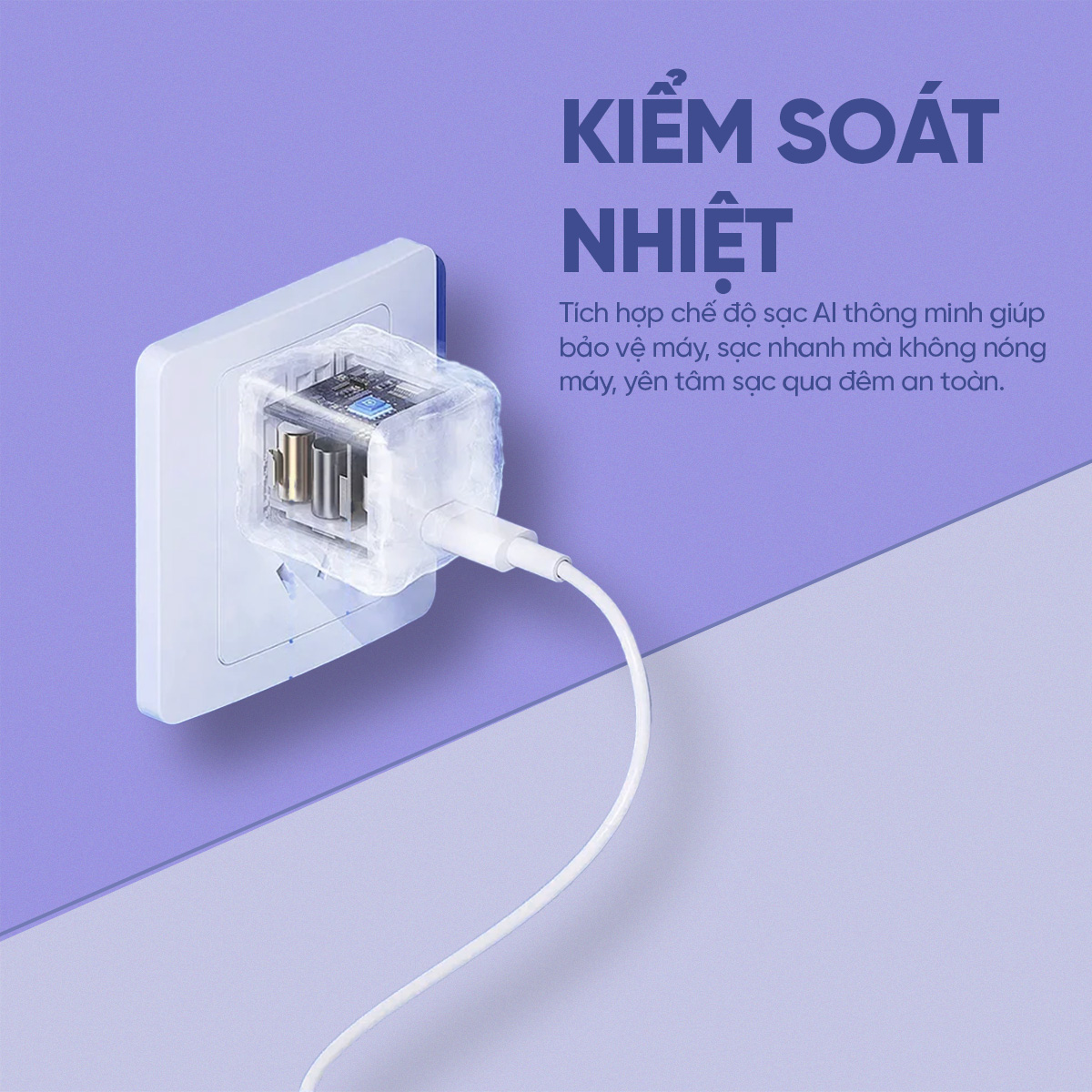 + Tích hợp chế độ sạc AI thông minh giúp bảo vệ máy, sạc nhanh mà không nóng máy, yên tâm sạc qua đêm an toàn