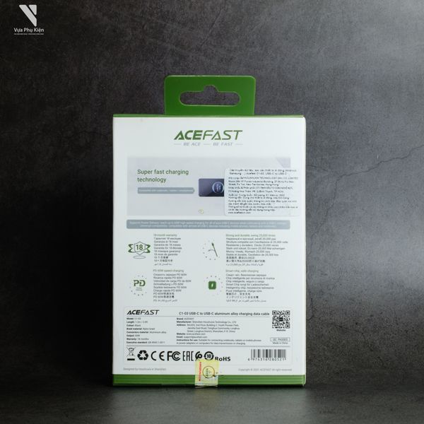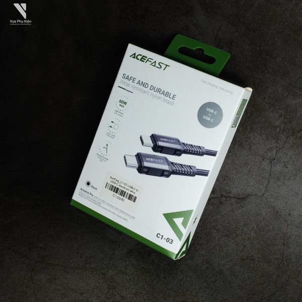 Cáp sạc ACEFAST C1-03 Type C to Type C, dài 1.2m, đầu nối hợp kim nhôm, hỗ trợ sạc tối đa 20V / 3A - 60W cho máy tính và sạc nhanh 3A cho điện thoại Android