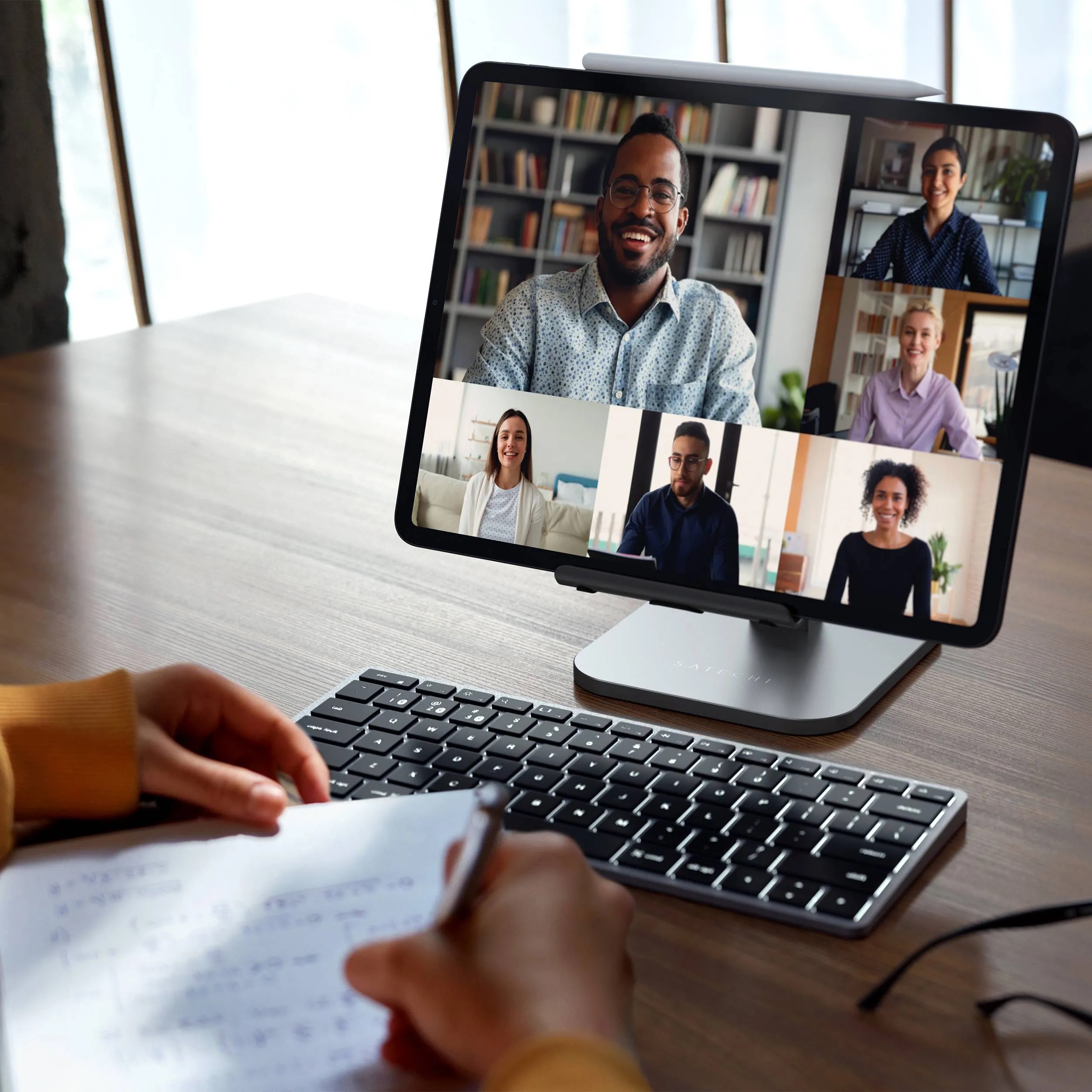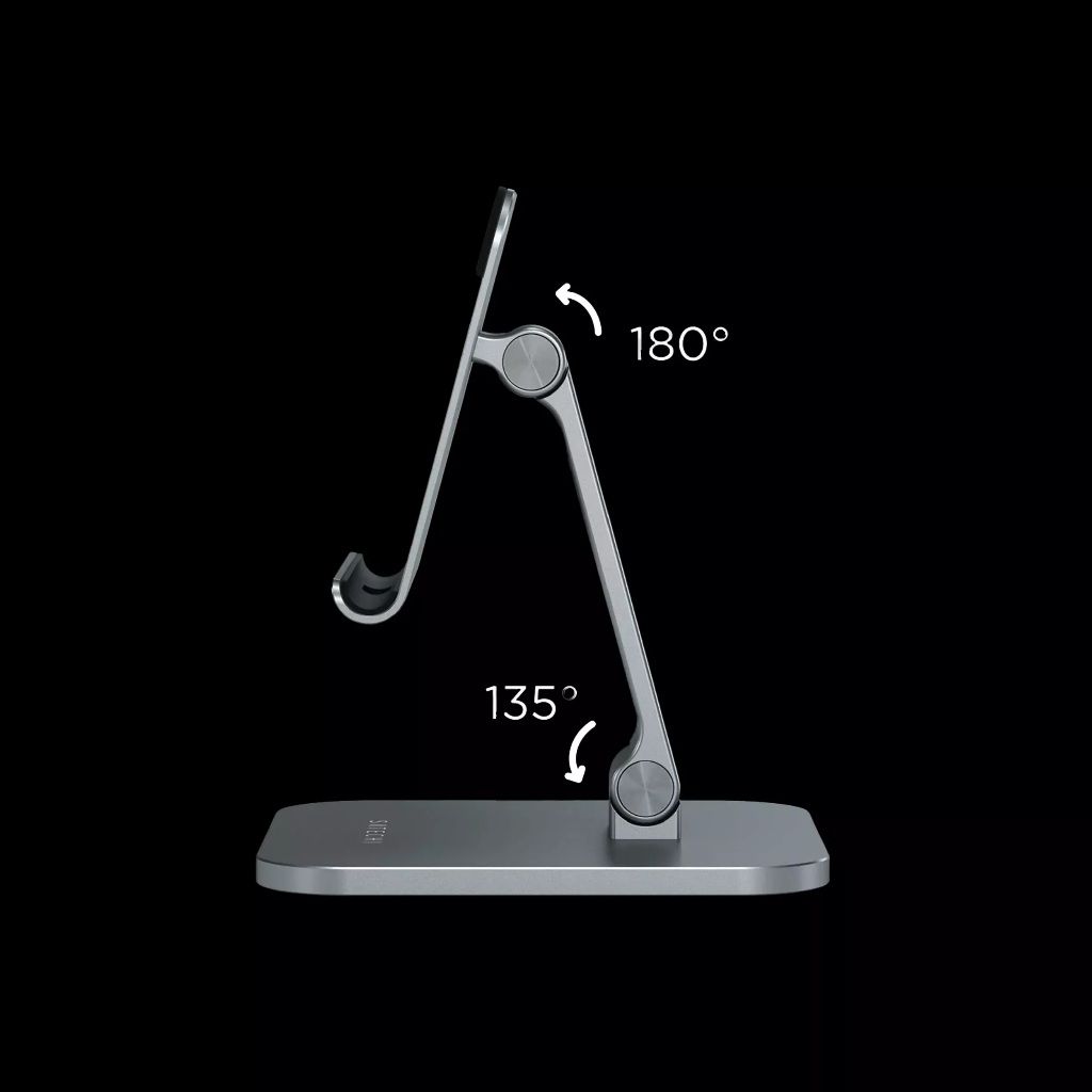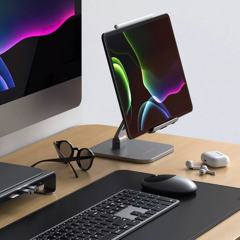 Một chỗ đứng - Công dụng vô tận: Đế để bàn bằng nhôm giữ chắc chắn tất cả các kích cỡ iPad và giúp bạn dễ dàng xem rảnh tay – hoàn hảo cho các cuộc gọi nhóm FaceTime, video tập thể dục tại nhà, cuộc gọi hội nghị ở cơ quan, v.v.