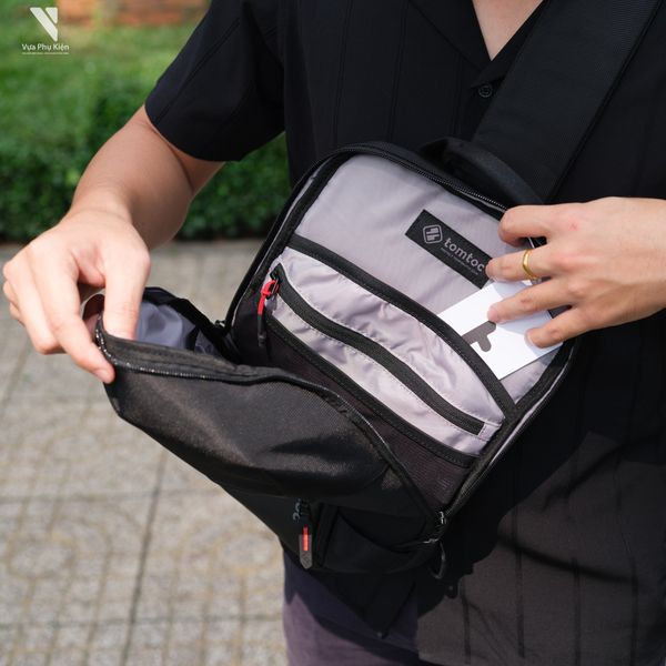 Thể tích lên đến 7 lít cho tất cả các vật dụng cần thiết hàng ngày của bạn. Túi máy tính bảng dành cho iPad lên đến 11 inch với dây đeo chéo vai (Sling Pack), cùng với nhiều túi bên trong giúp các phụ kiện được sắp xếp gọn gàng: bộ sạc, ví, vật dụng cá nhân khác…