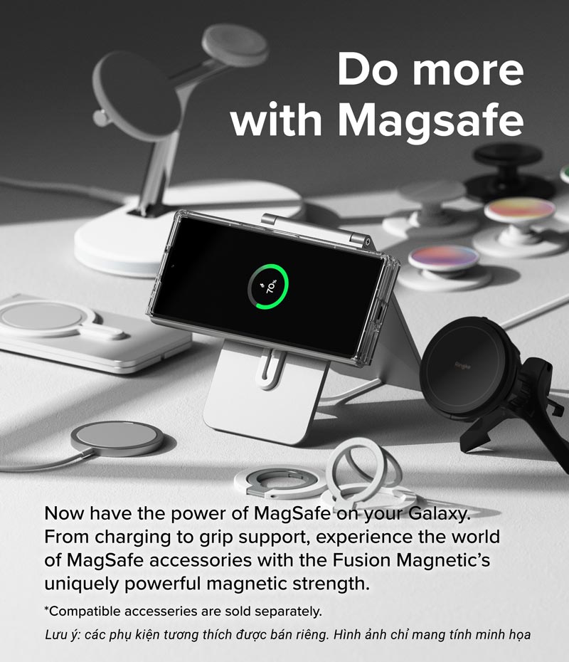 Tuỳ thuộc khả năng tương thích mà sạc MagSafe hoặc các loại sạc có chứng nhận MFM-certified có thể hoạt động chậm hơn hoặc không hoạt động trên các thiết bị Samsung. Xin lưu ý rằng đây KHÔNG PHẢI LỖI do ốp lưng.