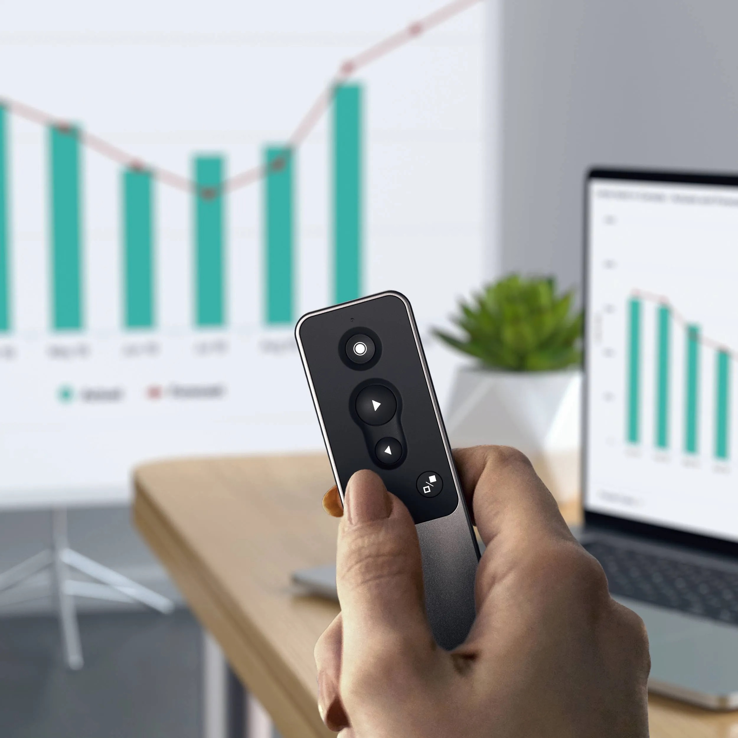 Điều khiển - Bài thuyết trình của bạn: Có trình nhấp chuột tiến/lùi, bàn phím ảo, con trỏ laser màu đỏ và nút tắt màn hình để giúp kiểm soát và nâng cao chất lượng bài thuyết trình của bạn từ xa.