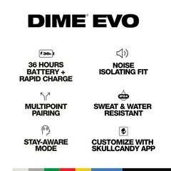 Tai nghe bluetooth SKULLCANDY DIME EVO nhét tai, xuyên âm và EQ, kết nối đa thiết bị