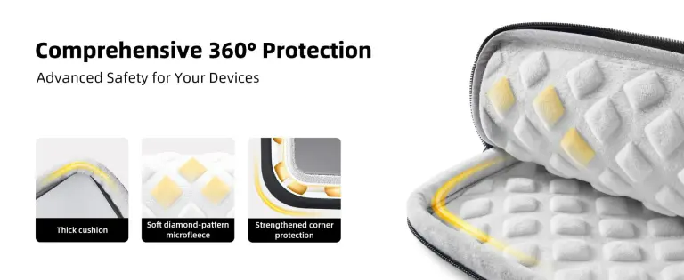 Lớp lót Microfleece mềm mại với họa tiết kim cương không chỉ bảo vệ máy khỏi trầy xước mà còn mang lại vẻ đẹp tinh tế.